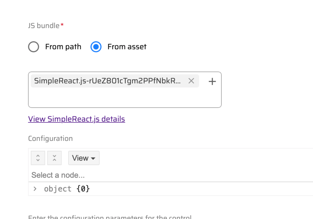 I will talk about this more in a future blog. In the object section you can pass properties from the content hub to your React component. This is very powerful as it allows you to interact with the asset.