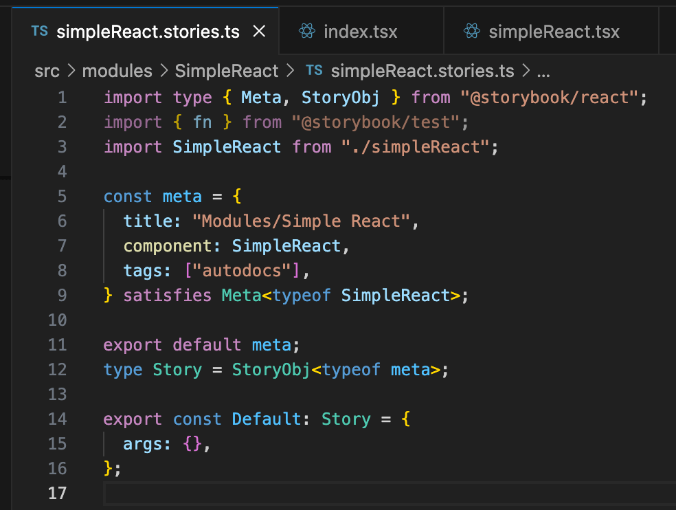 The stories.ts file is use to run with storybook. You can use it to not only call the react component, but you can pass parameters as well.
