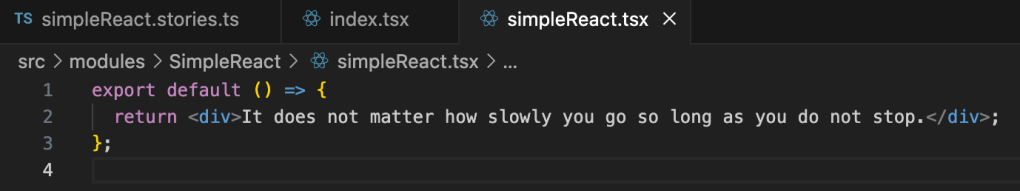 I will keep this simple and show you how a simple React component would work. Keep in mind this is part of a starter kit I used and had a lot of things setup already. I simply had to create the component. I will link to the starter kit in this blog post.