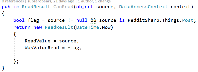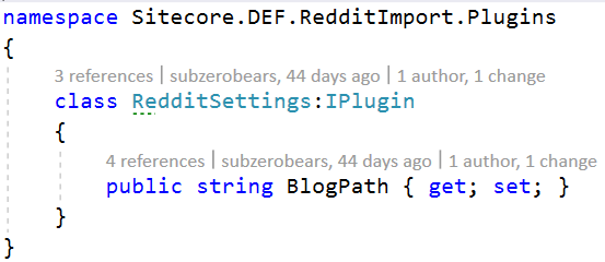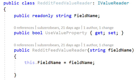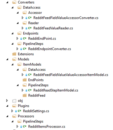 This class will process the Reddit Post item and match field name with value. Title, AuthorName, SelfText etc… are field names in the Reddit feed. I believe you can name these differently, but I prefer to keep the same name as it is in the Reddit post item.