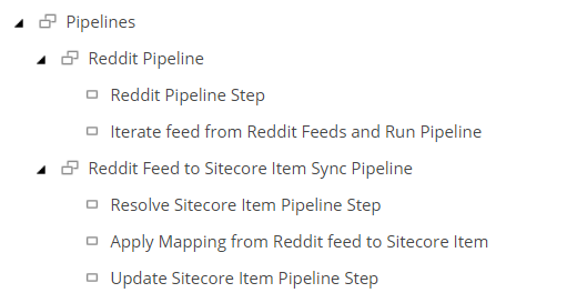 In Sitecore under Pipelines\Reddit Pipeline\Reddit Pipeline Step you will see under Processor Type the RedditItemsProcessor defined.